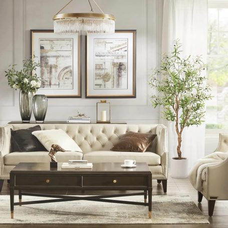 No Scandinavian living room is complete without greenery. This tall artificial olive tree features natural-looking branches and realistic silk leaves, giving your home a fresh and organic feel without the maintenance.
