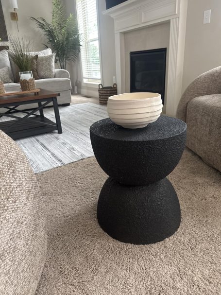 minimalist look. Its compact size and perfect chair-arm height make it ideal as an accent table for small drinks, books, or even a plant stand.