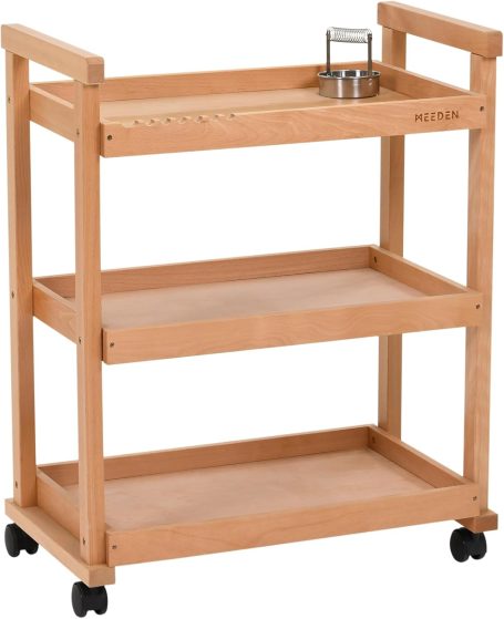 Our Pick: Bamboo 3-Tier Rolling Cart - This mobile cart provides flexible hot beverage station storage with natural warmth. Its wheels allow you to move it for entertaining or tuck it away when not in use, while the natural bamboo fits perfectly with Scandinavian aesthetic principles.