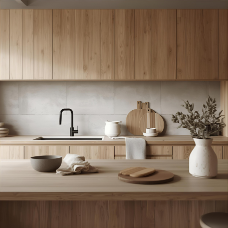 - Solid Surface & Laminate: Cost-effective and versatile for minimalist kitchens.