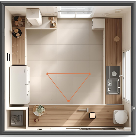 - Prep Zone: Counter space near the sink for washing and cutting ingredients.