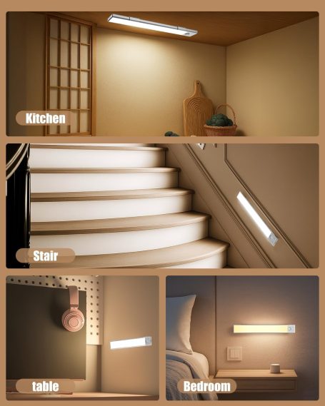 - Interior cabinet lighting or toe-kick lights highlight design details.